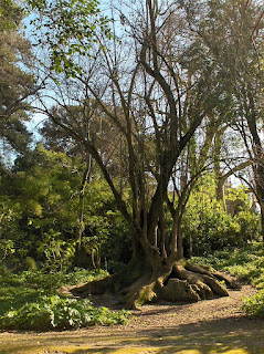 O Parque Botânico do Monteiro Mor: atravessá-lo é uma beleza. Se não fossem estas manias "botânicas", de ricos ou pobres, como estaríamos hoje tão diferentes! Por exemplo, aí estão plantadas desde 1842, árvores que fui distinguindo pela imponência do porte e aspecto. Aliás, uma das duas quintas de recreio agora juntas, destinava-se a ser um "jardim botânico" no séc. XIX.